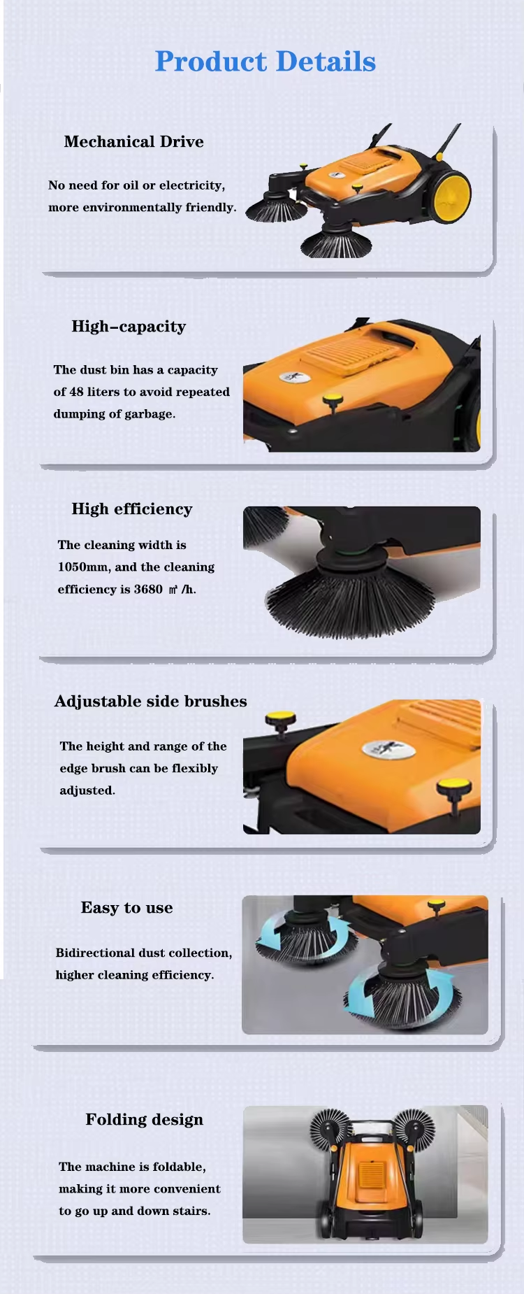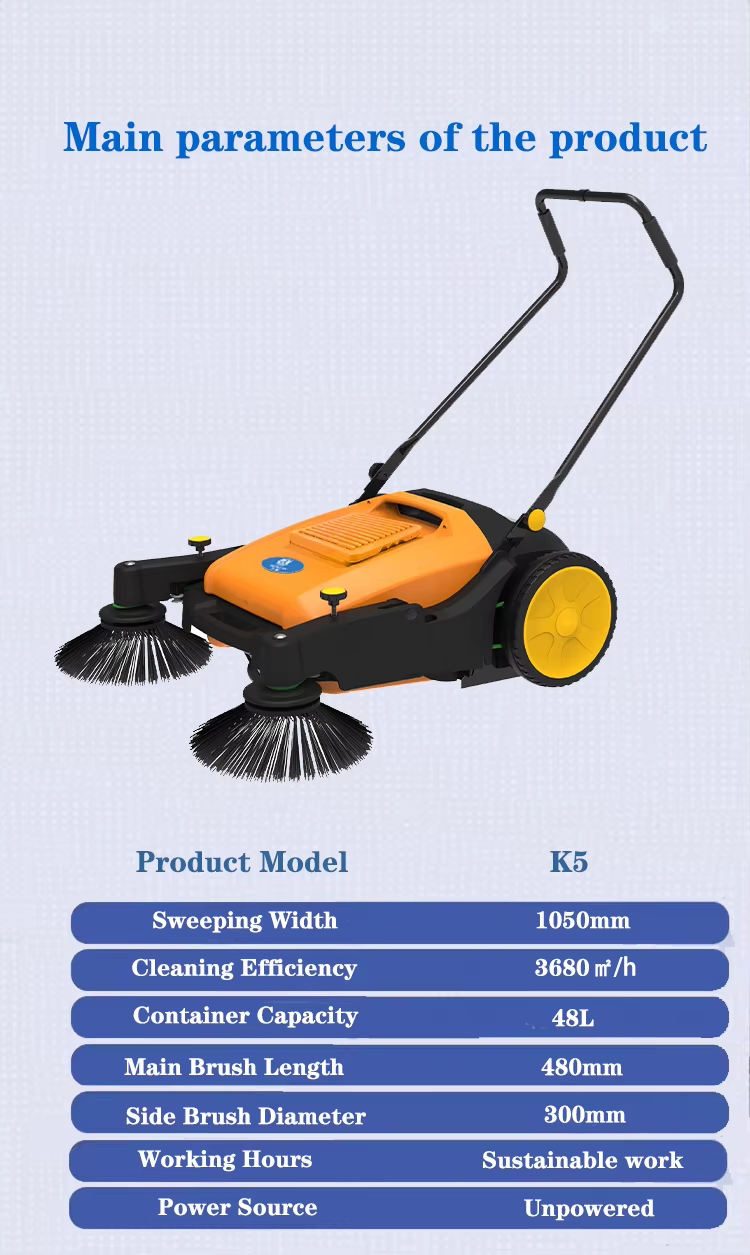 New Hand Push Manual Floor Sweeper Machine Industrial Walk-Behind Equipment for Warehouse Factory & Parking Lot Cleaning
