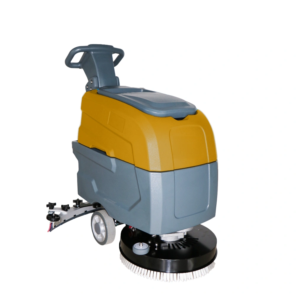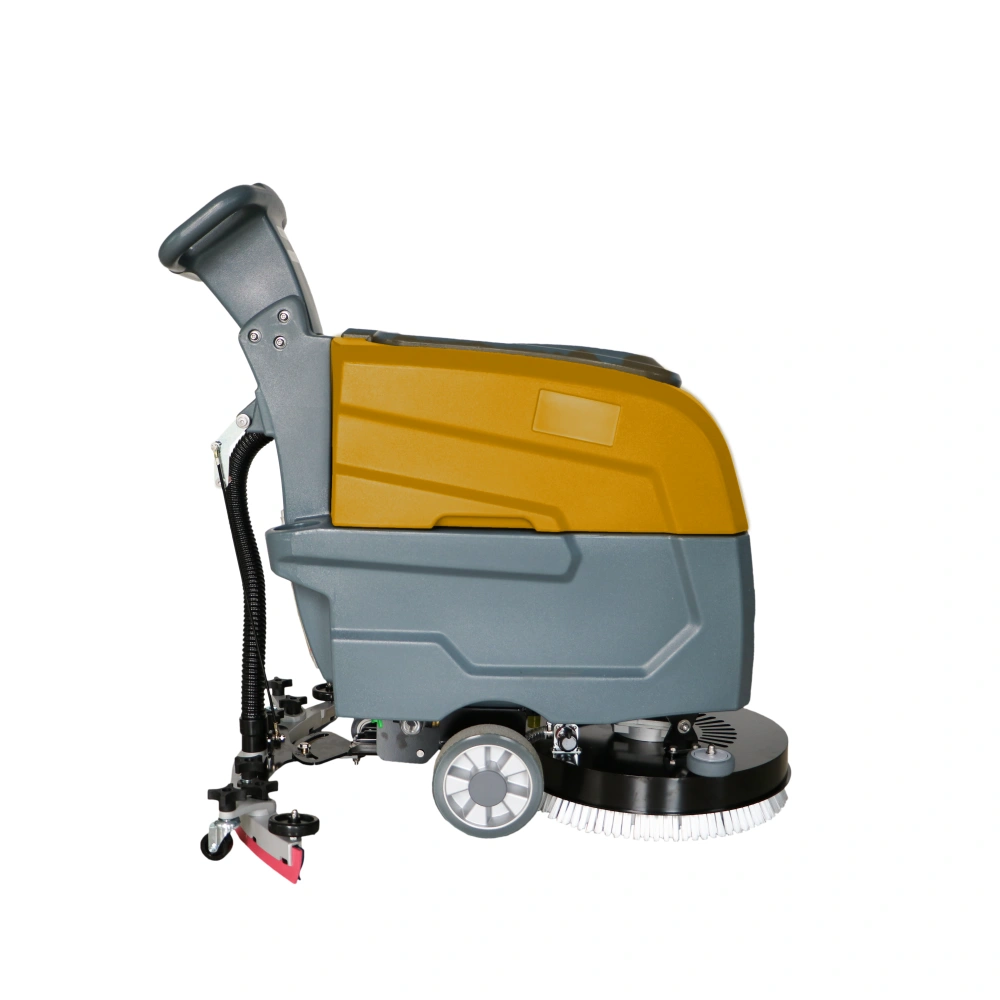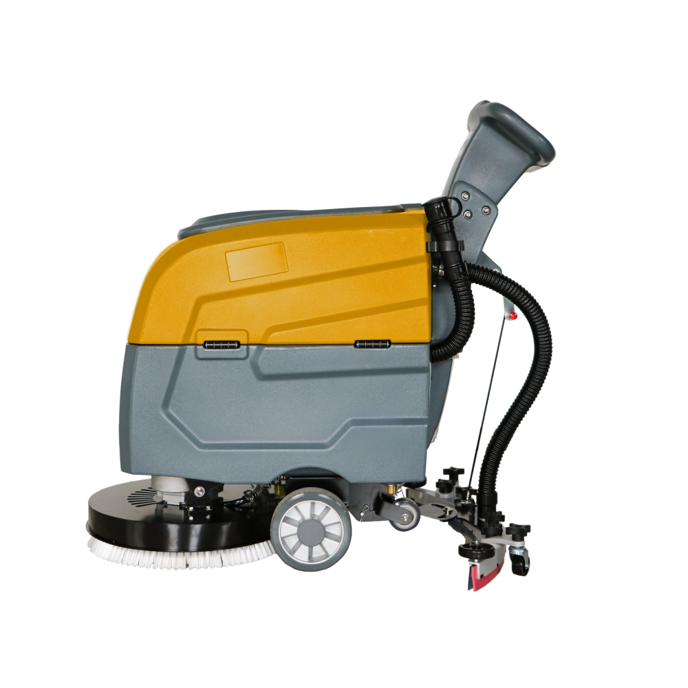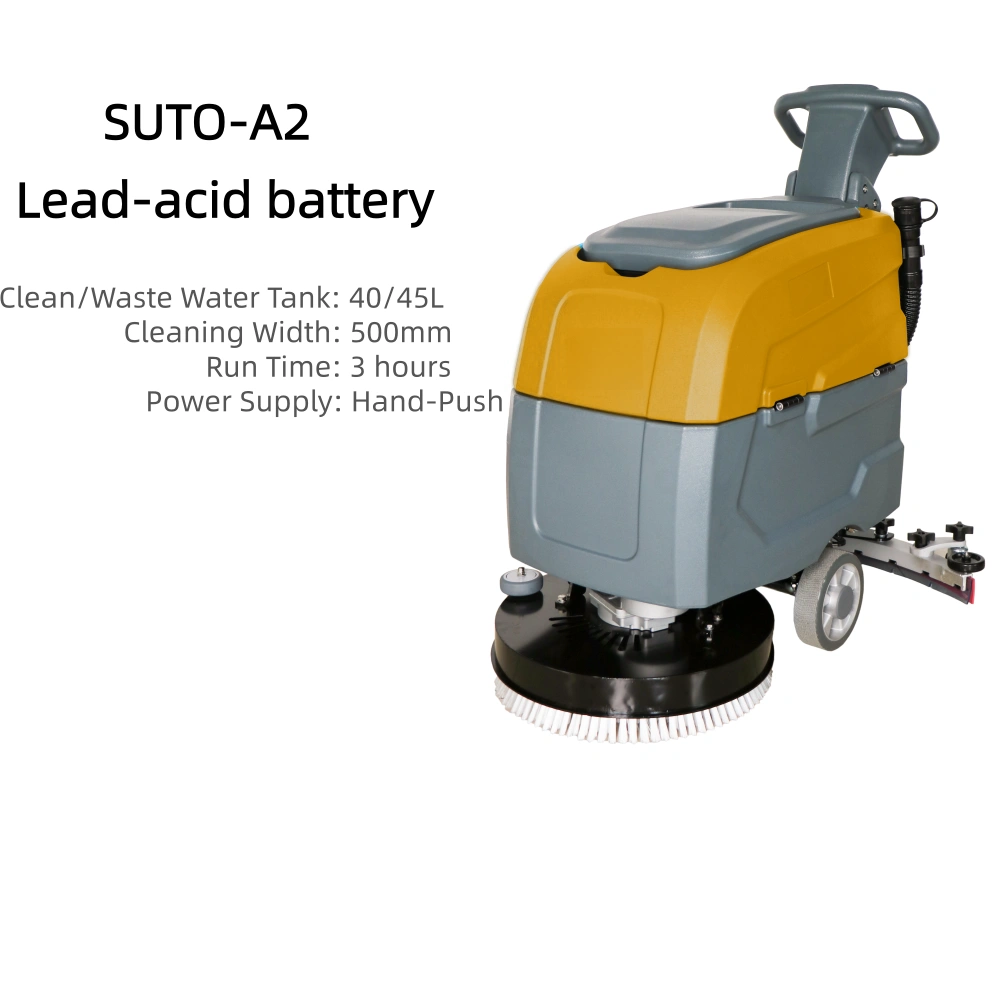 1.Energy-efficient electric-powered design: This 24V industrial electric ride-on scrubber is an eco-friendly option for large warehouses and factories, as it operates on electricity instead of fuel, making it an excellent choice for environmentally conscious businesses. 2.Enhanced cleaning performance with core brush motor: Equipped with a powerful 550W core brush motor and 400W vacuum motor, this scrubber delivers exceptional cleaning performance, effectively removing tough dirt, grime, and stains from floors. The battery, which can last up to 2-3 hours on a single charge, ensures continuous operation throughout your cleaning process. 3.Large cleaning coverage: With a cleaning path of 460mm and a squeegee width of 720mm, this scrubber can achieve an impressive 8-10H maximum coverage per hour. Its design allows for efficient cleaning of large spaces, saving time and labor in terms of floor cleaning tasks. 4.Convenient push-driven operation: The machine is designed with a push-driven mechanism, allowing for easy handling and maneuverability on uneven surfaces. This user-friendly design reduces operator fatigue and provides more control while in use. 5.Robust build for durability: Manufactured in Anhui, China, this SUTO brand ride-on scrubber boasts a sturdy build, ensuring optimal performance and reliability over time. The 1-year warranty provides peace of mind, while the product’s 63.5kg weight and dimensions (1080mm x 720mm x 1000mm) enable convenient storage and transportation.