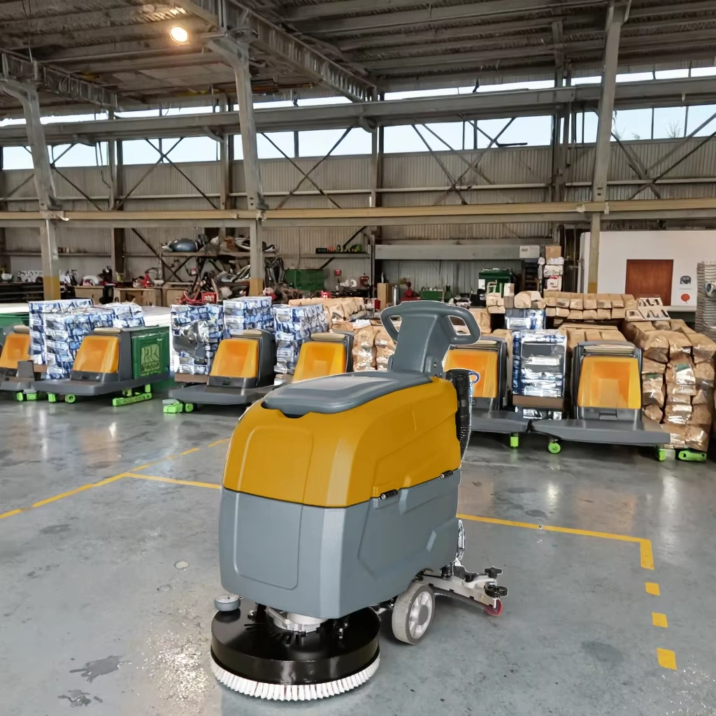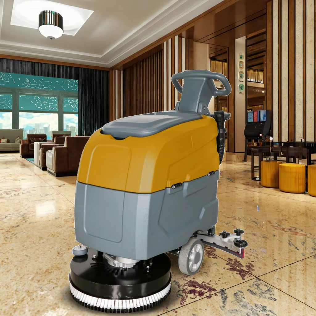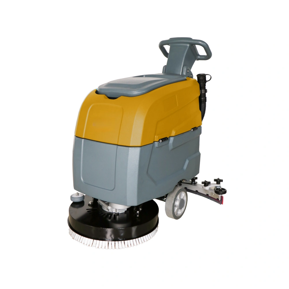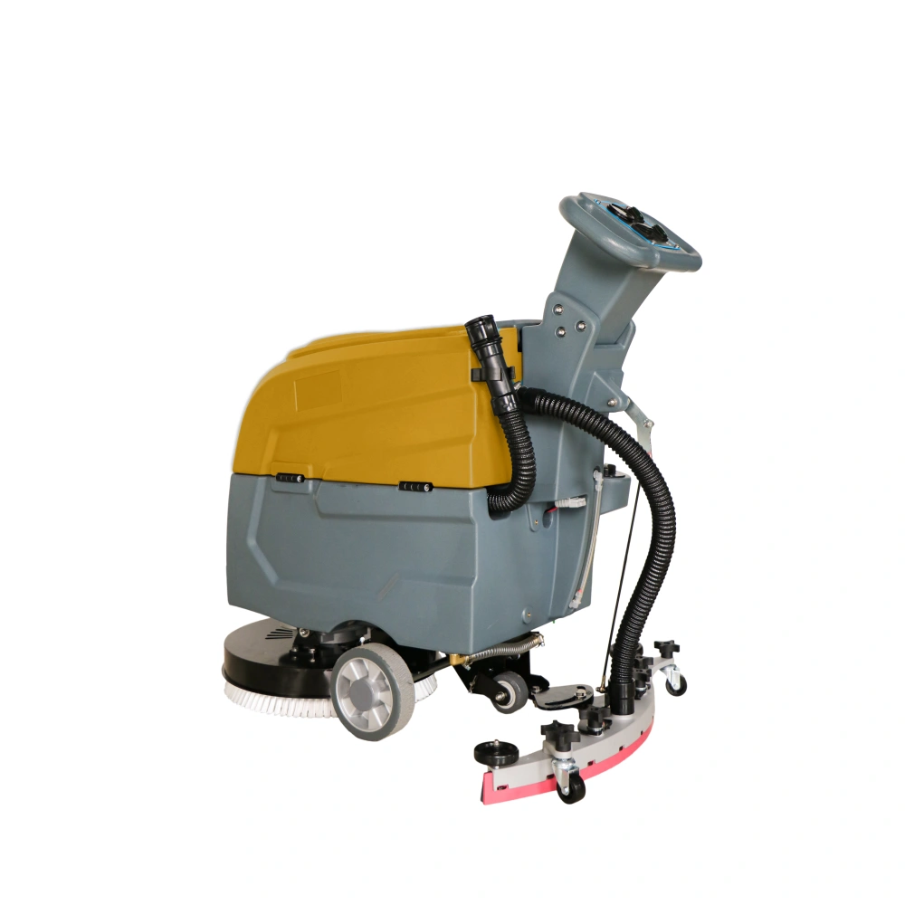 1.Energy-efficient electric-powered design: This 24V industrial electric ride-on scrubber is an eco-friendly option for large warehouses and factories, as it operates on electricity instead of fuel, making it an excellent choice for environmentally conscious businesses. 2.Enhanced cleaning performance with core brush motor: Equipped with a powerful 550W core brush motor and 400W vacuum motor, this scrubber delivers exceptional cleaning performance, effectively removing tough dirt, grime, and stains from floors. The battery, which can last up to 2-3 hours on a single charge, ensures continuous operation throughout your cleaning process. 3.Large cleaning coverage: With a cleaning path of 460mm and a squeegee width of 720mm, this scrubber can achieve an impressive 8-10H maximum coverage per hour. Its design allows for efficient cleaning of large spaces, saving time and labor in terms of floor cleaning tasks. 4.Convenient push-driven operation: The machine is designed with a push-driven mechanism, allowing for easy handling and maneuverability on uneven surfaces. This user-friendly design reduces operator fatigue and provides more control while in use. 5.Robust build for durability: Manufactured in Anhui, China, this SUTO brand ride-on scrubber boasts a sturdy build, ensuring optimal performance and reliability over time. The 1-year warranty provides peace of mind, while the product’s 63.5kg weight and dimensions (1080mm x 720mm x 1000mm) enable convenient storage and transportation.